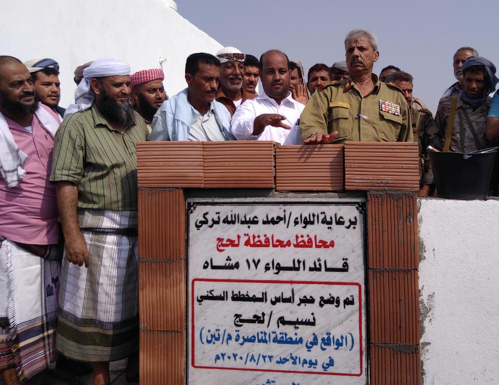 قام محافظ محافظة لحج قائد اللواء 17 مشاة اللواء الركن احمد عبدالله علي تركي اليوم الأحد بوضع حجر الأساس لمشروع مخطط مدينة النسيم السكنية بمنطقة دار المناصرة بمديرية تبن .