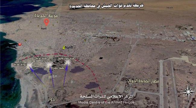 وقال وضاح الدبيش المتحدث باسم ألوية العمالقة الجنوبية، أنهم تمكنوا بدعم وإسناد من قوات التحالف العربي، من تطهير عدة مناطق حيوية في مدينة الحديدة، كانت تسيطر عليها ميليشيا الحوثي. وقال الدبيش، إنه تم تطهير وتحرير مناطق، “شارع المطار، وشارع الخمسين، وجولة اليمن موبايل، ومدينة الصالح، وكلية الهندسة”. وأوضح أن الساعات القليلة القادمة ستتم فيها السيطرة على كافة مداخل ومخارج مدينة الحديدة. وأظهرت لقطات ميدانية لقوات تابعة لقوات ألوية العمالقة الجنوبية، أمس الأحد، تقدمًا عسكريًا لتلك القوات، في داخل مدينة الحديدة اليمنية. وقالت مصادر عسكرية محلية وشهود عيان، إن التحالف نشر آلاف الجنود لاستعادة الحديدة، التي سيعتبر تحريرها خطوة حاسمة في الحرب على المتمردين الحوثيين