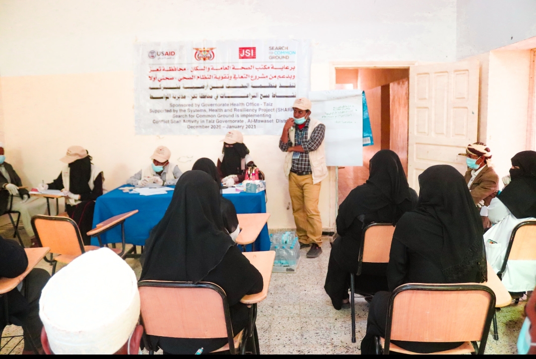 ويأتي نشاط مسح النزاعات ” بدعم من الوكالة الأمريكية للتنمية الدولية USAID وبقيادة منظمة(جون سنو) ضمن مشروع التعافي وتقوية النظام الصحي (صحتي اولا) الذي تنفذه “منظمة البحث عن ارضية مشتركة” وتحت رعاية مكتب الصحة والسكان بمحافظة تعز .