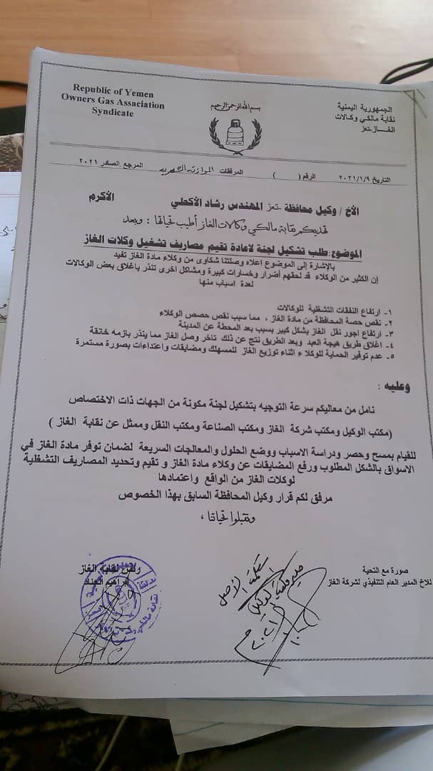 كشفت نقابة وكلاء الغاز في محافظة تعز عن خسائر ومشاكل تنذر باغلاق وكالات الغاز