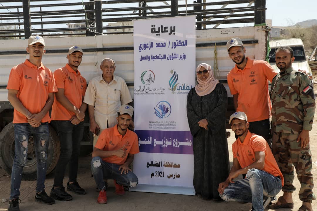إستجابة للدعوة التي وجهها معالي الدكتور محمد سعيد الزعوري وزير الشؤون الإجتماعية والعمل في حكومة المناصفة للمنظمات والمؤسسات والجمعيات وما تضمنه اللقاء التشاوري الذي عقد في 23 من فبراير الماضي بالعمل على تقديم المساعدات الإنسانية للأسر والمجتمع المضيف نظراً من للضروف المعيشية الصعبة التي يواجهونها نتيجة غلاء الأسعار وتوقف الرواتب وقدوم شهر رمضان المبارك تم يوم أمس توزيع تمور رمضان لحوالي الف اسرة في منطقة حجر قرية باجه المتاخمة لمناطق التماس بتمويل من مؤسسة يماني بالشراكة مع مؤسسة ينابيع الخير وتنفيذ منظمة بداية شباب.