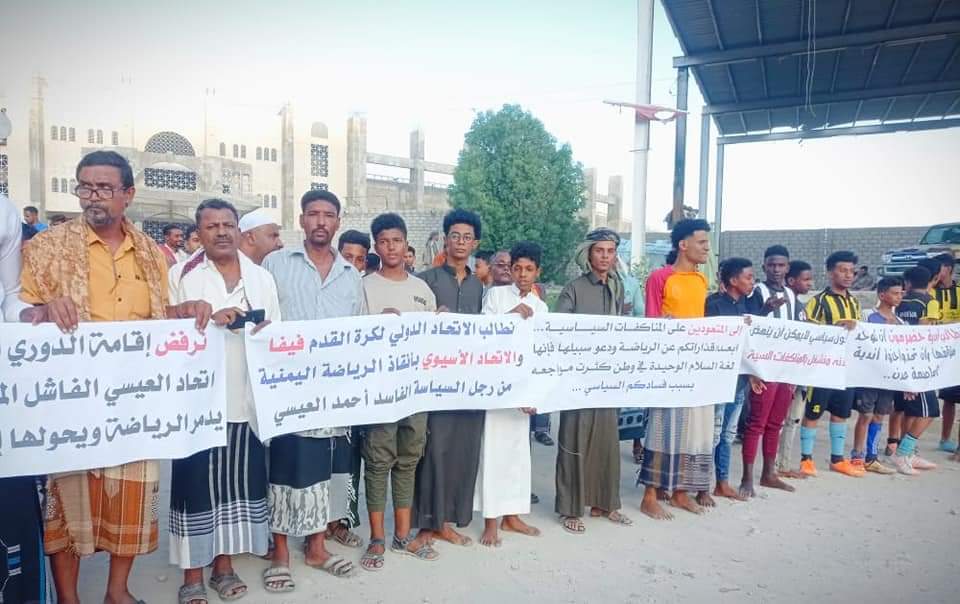 اننا في وادي حضرموت نطالب الاتحاد الدولي لكرة القدم فيفا والاتحاد الآسيوي بأنقاذ الرياضة اليمنية من اتحاد العيسي الفاشل الذي فشل في إدارة مكونه السياسي والتي أصبحت من بعده الرياضة اليمنية في عداد الموتى بسبب تسيسها واختراق لاوائحها التنظيمية .