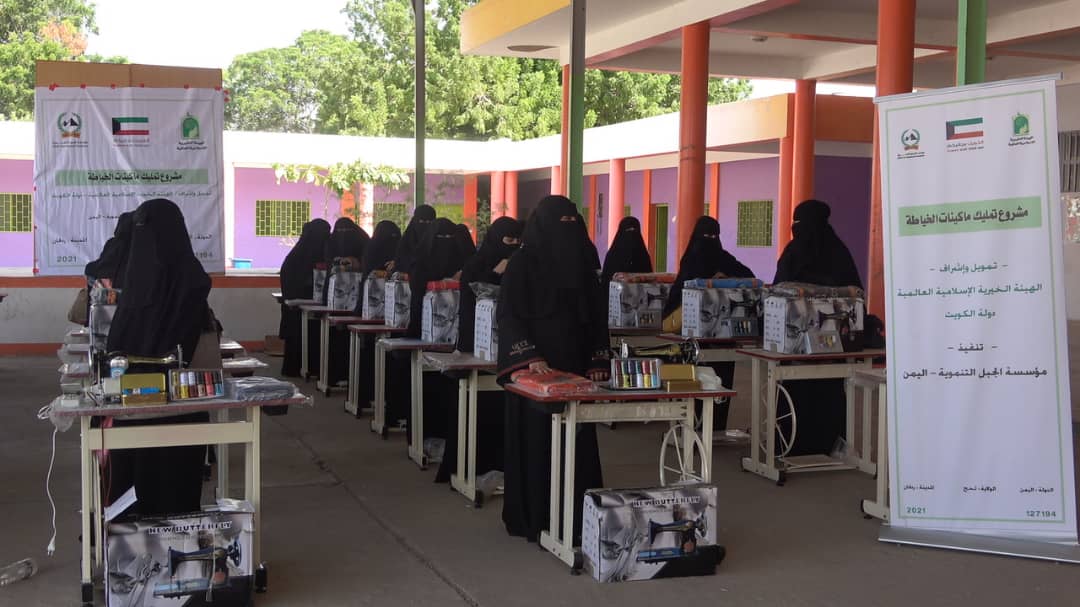 دشنت مؤسسة الجبل التنموية صباح اليوم بعاصمة محافظة لحج مشروع توزيع مكائن الخياطة مع مختلف ادواتها على النساء من ذوي الدخل المحدود والذي يتم بتمويل من الهيئة الخيرية الإسلامية العالمية بدولة الكويت.