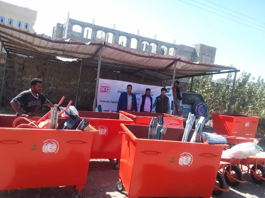 كما تم دعم الصندوق بعدد ٣٠ مكنسة و ٣٠ بخاشة حديد و ٣٠ مجرفة عربية و ٣٠ مجرفة حديد و ٥ حاويات حديد و ١ م مكعب و ١٠ عربيات حديد مجلفن و خمسة صناديق كمامات ٢٥ بندل اكياس بلاستيك اسود كبير ودراجتين نارية وثلاثة اطارات قلاب وصرف حوافز مالية للعمال تقدر ب ٤٠٠٠ ريال يمني لكل عامل في اليوم و صرف ٦٠٠٠ ريال يمني لكل مشرف في اليوم الواحد ولمدة ثلاثة أيام .