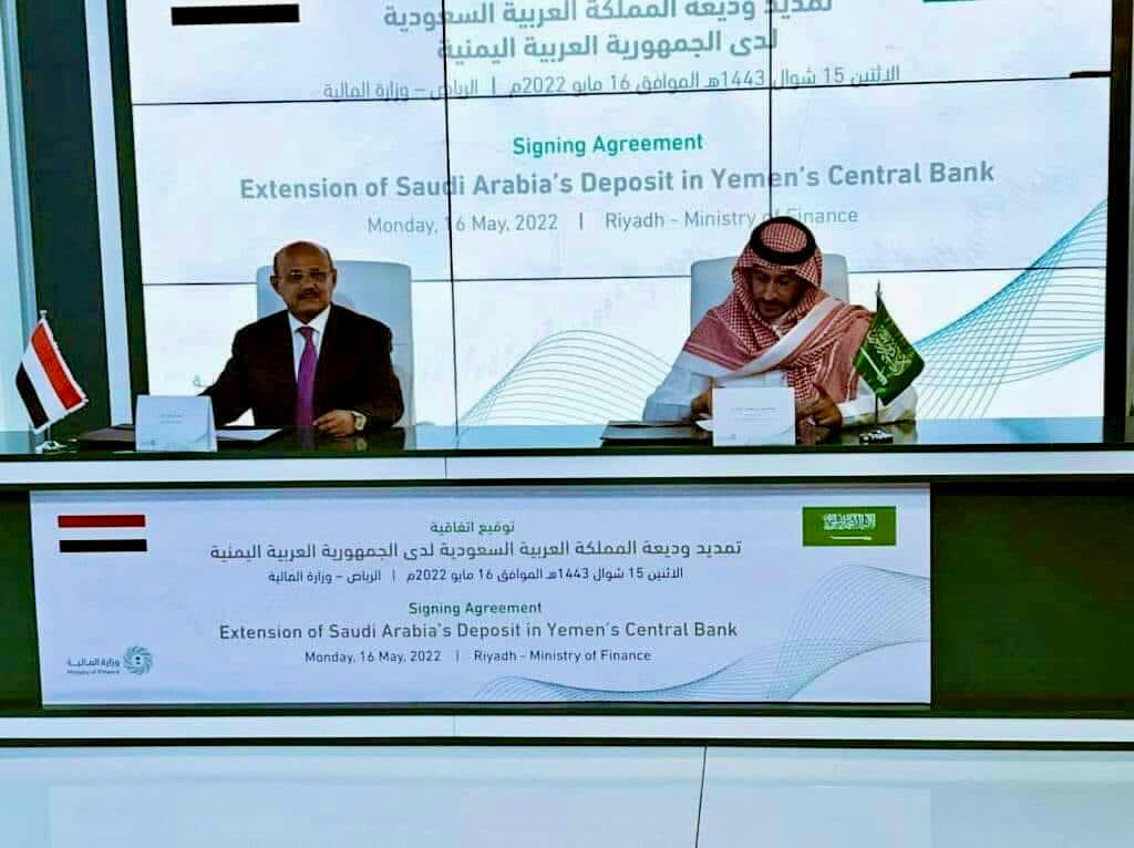 أظهرت الوثيقة التي تم التوقيع عليها صباح اليوم الإثنين الموافق 16 مايو 2022م، والخاصة بتمديد الوديعة السعودية السابقة وتحويل الدفعة الأخيرة منها والبالغة 174 مليون دولار الى حساب البنك المركزي اليمني اسم الدولة التي كانت قائمة في الشمال قبل الوحدة “الجمهورية العربية اليمنية” بدلا عن الجمهورية اليمنية .