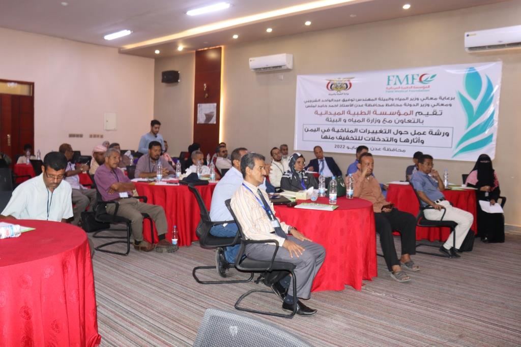 عقدت اليوم بالعاصمة المؤقتة عدن ورشة خاصة حول التغيرات المناخية في اليمن وآثارها والتدخلات للتخفيف منها نظمتها المؤسسة الطبية الميدانية بالتعاون مع وزارة المياة والبيئة .