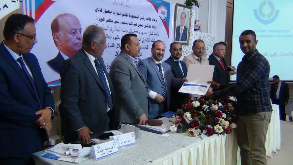 برعاية فخامة رئيس الجمهورية المشير عبد ربه منصور هادي ومعالي رئيس مجلس الوزراء الدكتور معين عبدالملك ، أختتمت بالعاصمة المؤقتة عدن اليوم، اعمال اللقاء الموسع لقيادات مصلحة الجمارك والاحتفال باليوم العالمي للجمارك تحت شعار ” حدود ذكية لسلاسة التجارة والسفر والنقل ” .