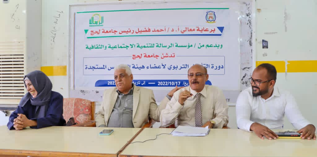 تفقد الدكتور / محمد عوض محمد نائب رئيس جامعة لحج لشؤون الأكاديمية صباح اليوم الثلاثاء الموافق 25 أكتوبر 2022م تنفيذ برنامج الدورة الطرائقية المقامة حاليا بكلية التربية صبر والتي يشارك فيها 57 مشارك ومشاركة من عضو هيئة تدريس وهيئة مساعدة من كلية ناصر للعلوم الزراعية وكلية التربية صبر