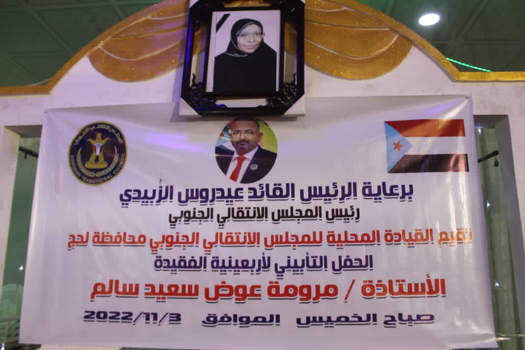 نظمت القيادة المحلية للمجلس الانتقالي الجنوبي بمحافظة لحج صباح اليوم بقاعة اتحاد النساء حفلا تأبينيا للفقيدة التربوية مرومه عوض سعيد.