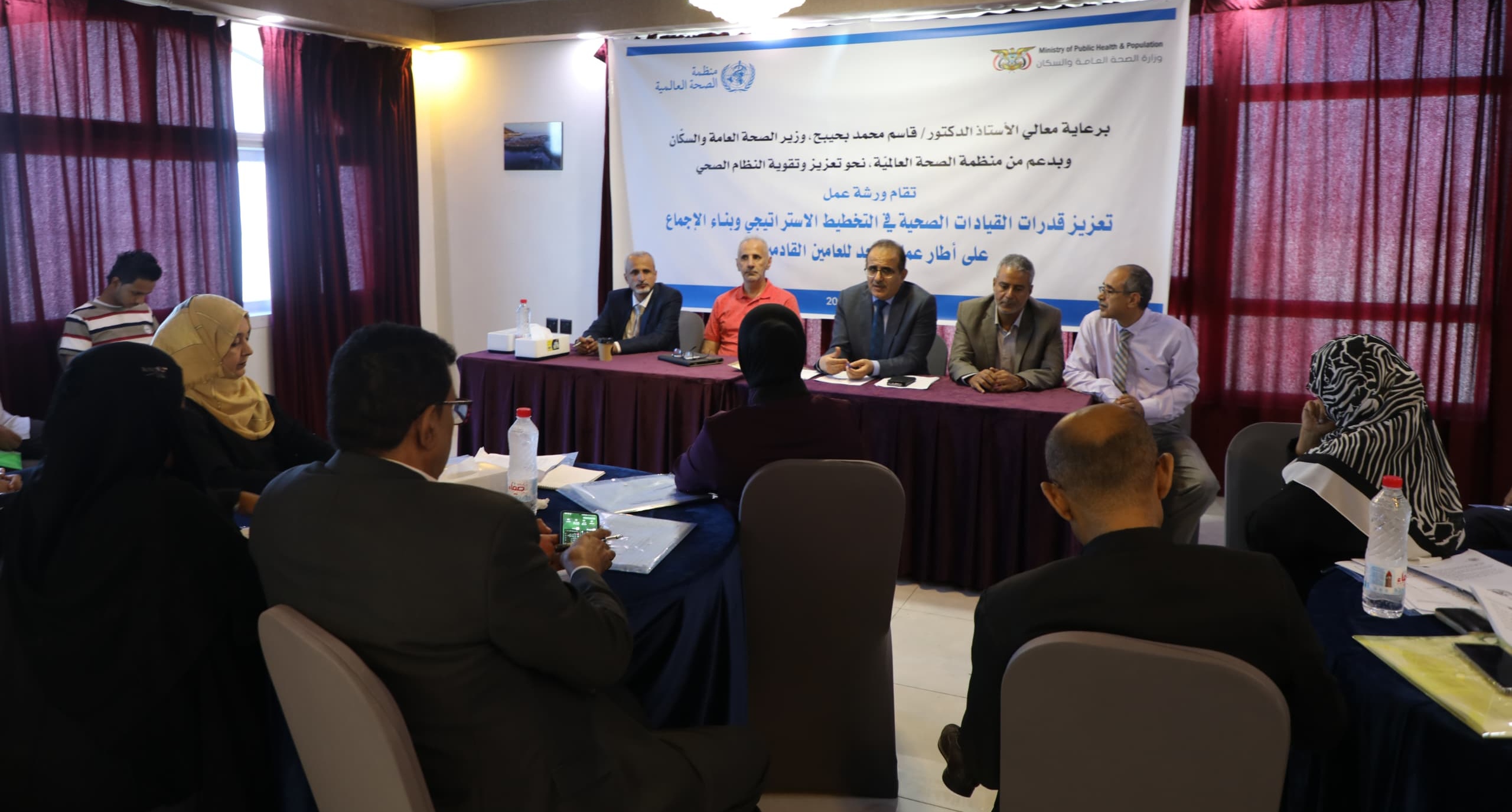 افتتح وزير الصحة العامة والسكان الدكتور قاسم محمد بحيبح بالعاصمة عدن اليوم ورشة عمل تعزيز قدرات القيادات الصحية في التخطيط الاستراتيجي وبناء الاجماع على إطار عمل موحد التي تنظمها وزارة الصحة بالتعاون مع منظمة الصحة العالمية.