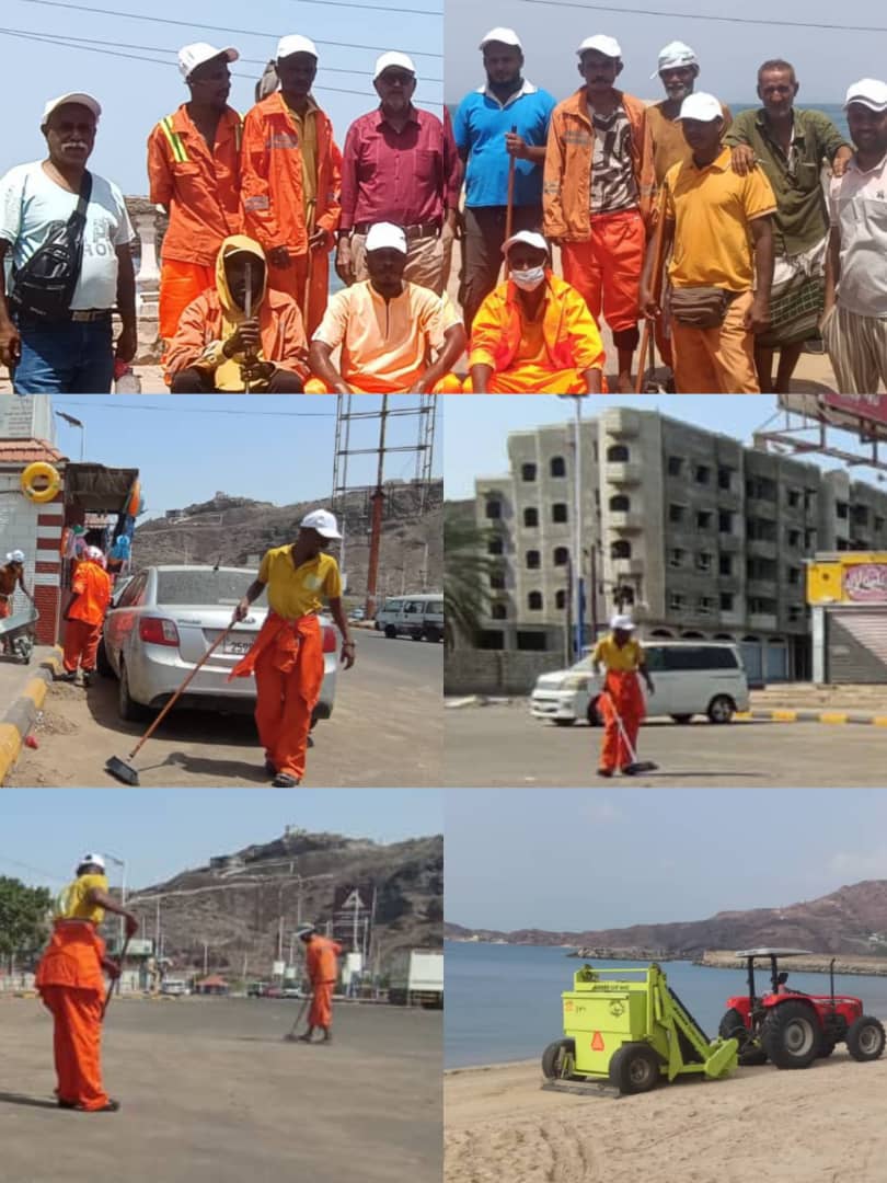 « عيدنا بين عمالنا» نعمل على قدم وساق و بوتيرة عالية دون كلل او ملل لتنفيذ برنامج العمل الدي شمل ايام الإجازات وها نحن اليوم مع ابطال النظافة في الساحل الذهبي جولدمور، ساحل كود النمر، ساحل الغدير وساحل فقم و درة عدن الحسوة .