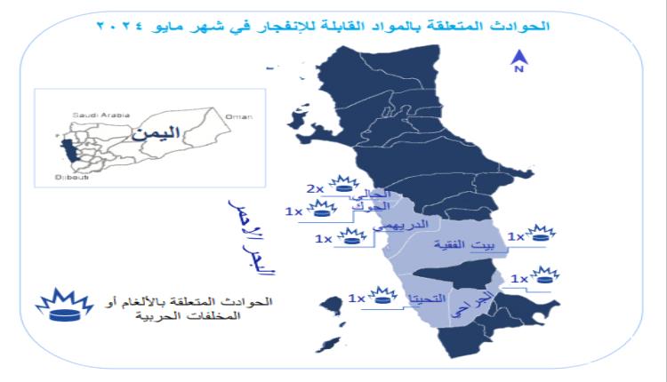 تسببت الألغام التي شهدتها محافظة الحديدة في مقتل وإصابة 9 ضحايا مدنيين، خلال شهر مايو الماضي.