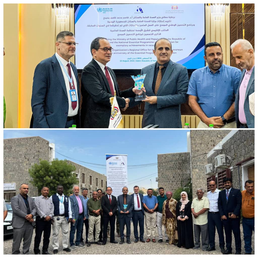كرم المكتب الإقليمي لشرق المتوسط لمنظمة الصحة العالمية البرنامج الوطني للتحصين الصحي الموسع بوزارة الصحة العامة والسكان في بلادنا نظير تميزه وانجازاته المحققة على مدى خمسين عاما .