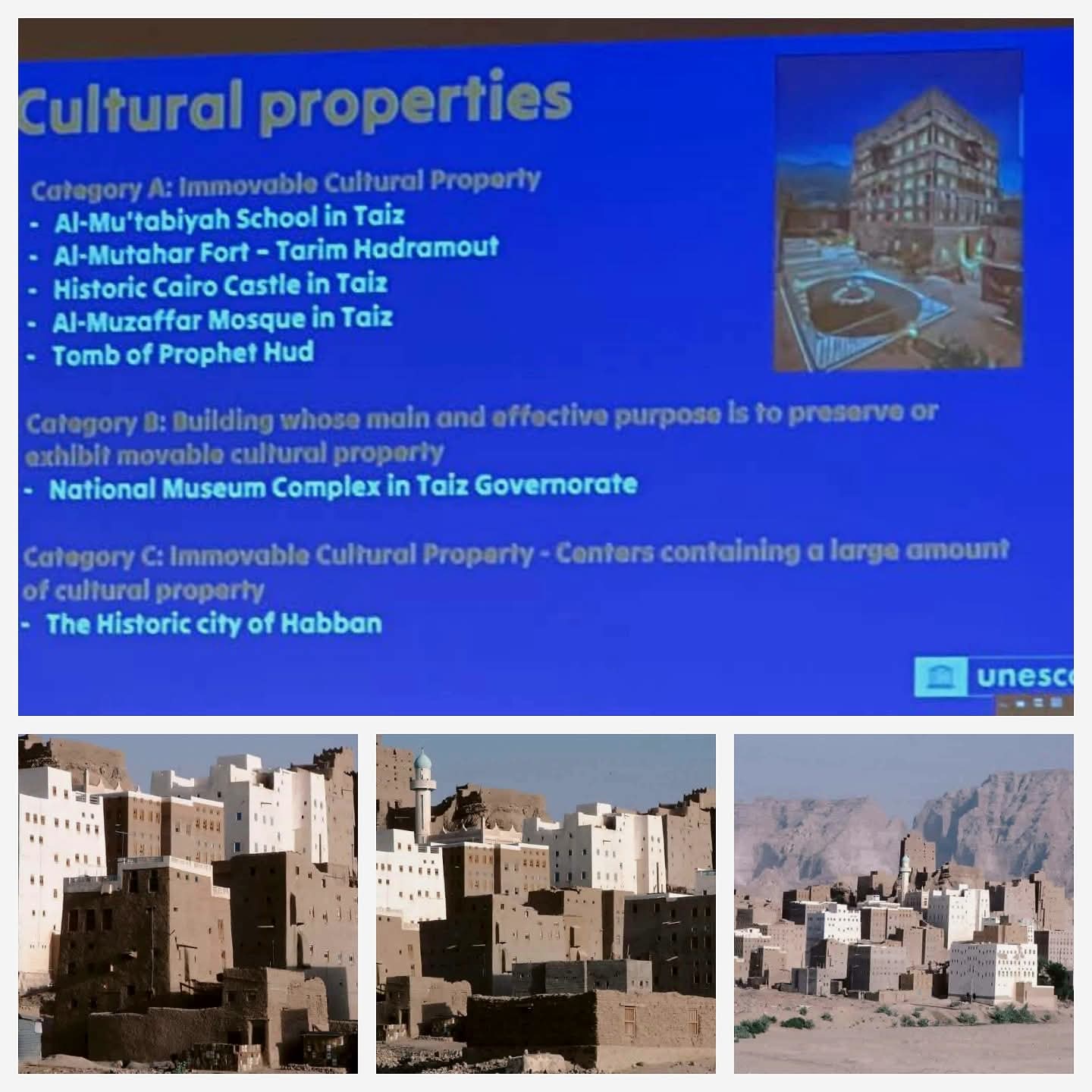 وأكد السفير جميح أن اليمن تلتزم بحماية المواقع المدرجة ومنع أي استخدام عسكري لها، فيما تلتزم الأطراف الدولية بحمايتها خلال النزاعات. ووجّه شكره لوزارة الثقافة، والهيئة العامة للآثار، والهيئة العامة للحفاظ على المدن التاريخية، وجميع الخبراء الذين ساهموا في إعداد الملفات الفنية.