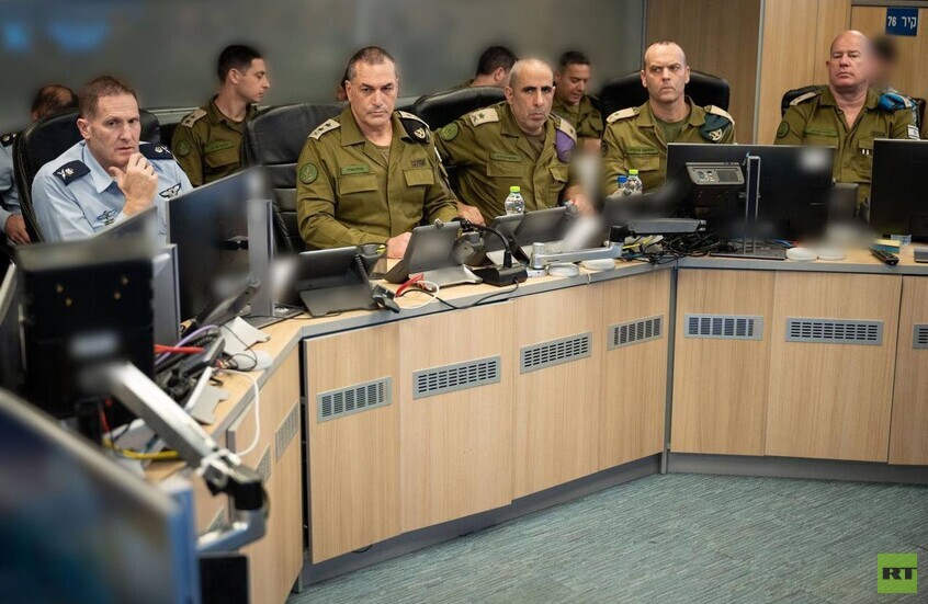 وأظهرت الصور رئيس الأركان يشرف مع قادة الأركان العام على الضربات في لبنان من مقر سلاح الجو وقائد القيادة الشمالية من مقر القيادة.