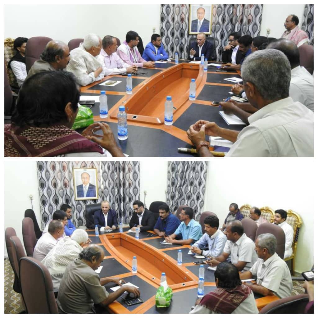 وتم خلال اللقاء مناقشة عدد من القضايا والموضوعات المتعلقة بأوضاع ونشاط مؤسسات المياه والصرف الصحي في عتق وبيحان ونصاب والسبل الكفيلة برفع إنتاجية المياه فيها ومعالجة معوقات تسديد مبالغ إستهلاك المياه من قبل المشتركين فيها .