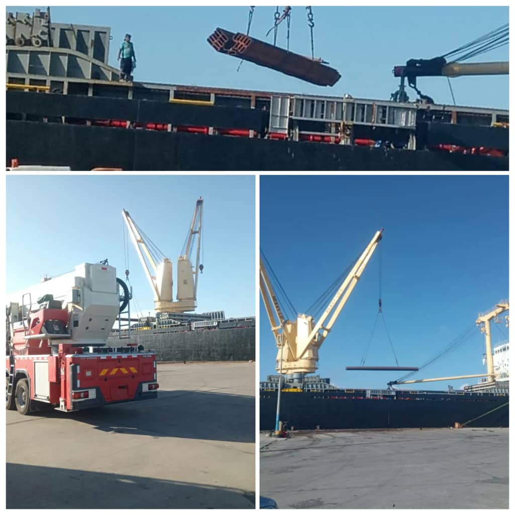 كما شملت حمولة السفينة سيارتين إطفاء جديدة وحديثة خاصة باخماد الحرائق النفطية وتستخدم الرغوة ( الفوم ) خلال عملية الاطفاء ..