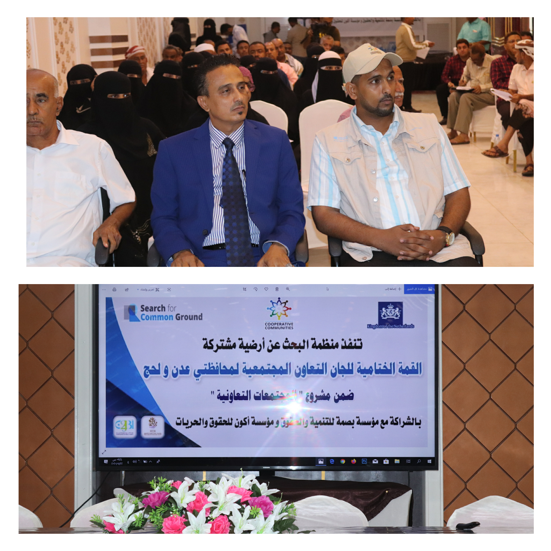 القمة الختامية والذي حضر فيها وكيل وزارة الإدارة المحلية الأستاذ عوض مشبح ومدير عام مديرية تبن بمحافظة لحج الأستاذ محسن جعفر السقاف ومدير مديرية المنصورة بعدن الأستاذ محمد عمر البري ومنسقة مشروع مجتمعات تعاونية بمنظمة البحث عن أرضية مشتركة نعمة مالك وضابط المشروع الأستاذ محمد البكري إلى جانب حضور 55 من الوسطاء المحليين بالمحافظتين وممثلي السلطة المحلية ومؤسسات المجتمع المدني استعرض فيها ما نفذته المنظمة عبر مشروعها من أنشطة وجلسات حوارية ومشاريع تنموية مع عرض أليات التنفيذ وإيجابية كل مشروع وأهميته.