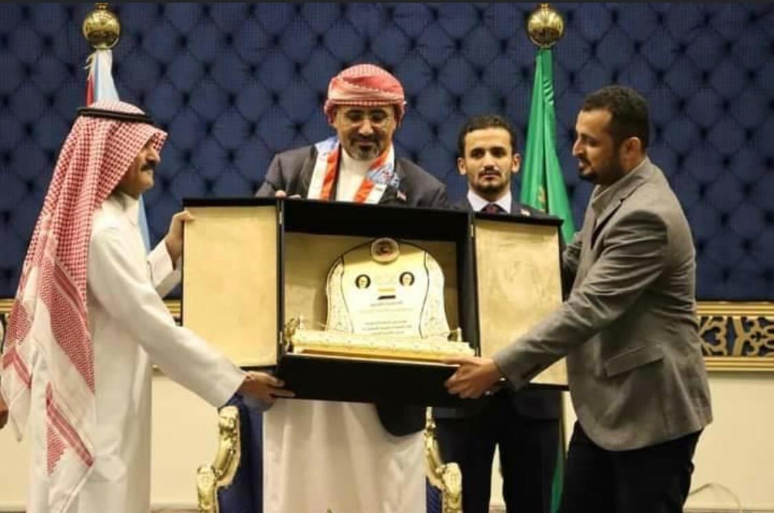 ولقد كرم رئيس المجلس الانتقالي عيدروس الزبيدي في ختام اللقاء من قبل رئيس الجالية الجنوبية عباس صنيج الشاعري .