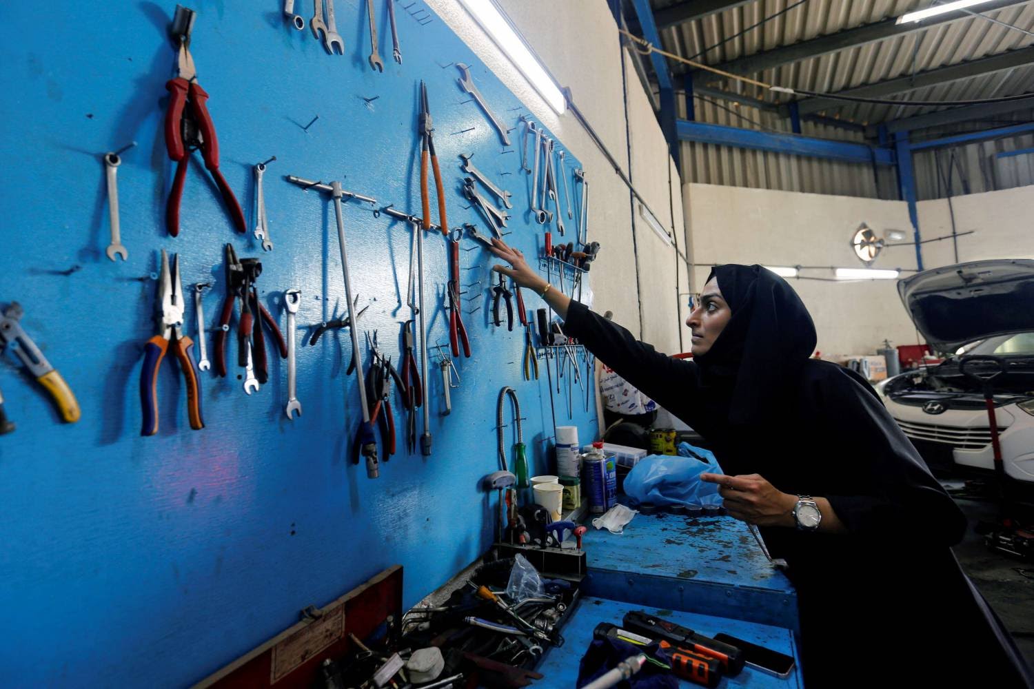 وتعد المطروشي (36 عاما) واحدة من إماراتيات قليلات يغامرن بالعمل في مجال إصلاح السيارات الذي يهيمن عليه الرجال في العالم العربي منذ زمن.