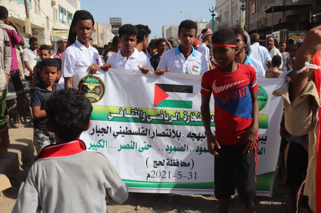 هذا ولقد وجهت مؤسسة جنوبيين ضد التطبيع بالشراكة مع مجلس الأنقاض الوطني دعوة للخروج والابتهاج بهذا النصر الذي سطره دماء زكية سقطت وهي تدافع عن القدس وغزة وفلسطين حيث شاركت مختلف فئات المجتمع في لحج بالخروج وتقدم المسيرة مدير عام مديرية الحوطة الأستاذ محسن كرد والاستاذ دليل طنبح ومحسن الكومي الأمين العام للمجلس .
