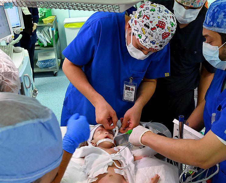 يجري هذه العملية الجراحية المعقدة التي تأتي تنفيذاً لتوجيهات خادم الحرمين الشريفين، الملك سلمان بن عبدالعزيز فريق طبي متخصص ومتكامل مكون من 25 طبيبا ومساعد طبيب و فني تخدير واخصائيين، باشراف مباشر من المستشار في الديوان الملكي ورئيس مركز الملك سلمان للإغاثة والأعمال الانسانية الدكتور عبدالله الربيعة.