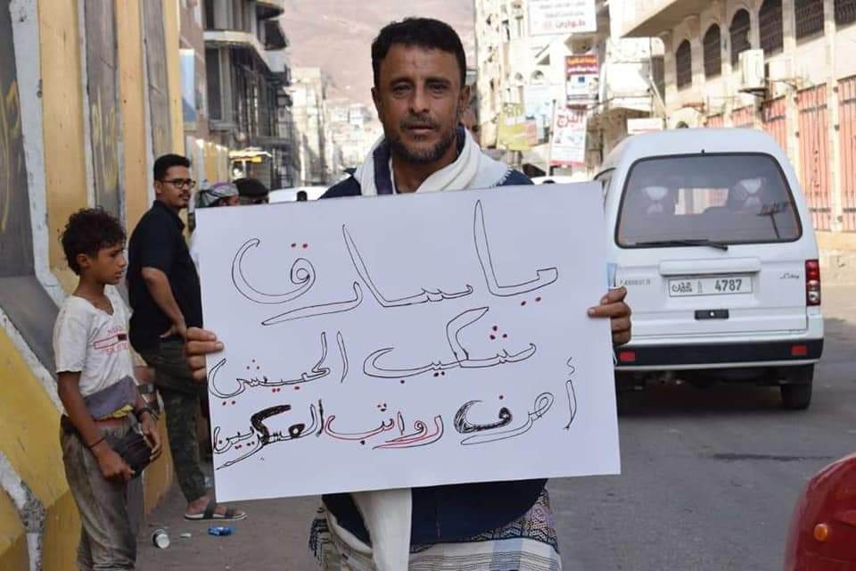 تظاهر صباح اليوم الأحد العشرات من الجنود والضباط القدامى أمام البنك المركزي اليمني ، للمطالبة بصرف مستحقاتهم المنقطعة منذ ٨ أشهر.