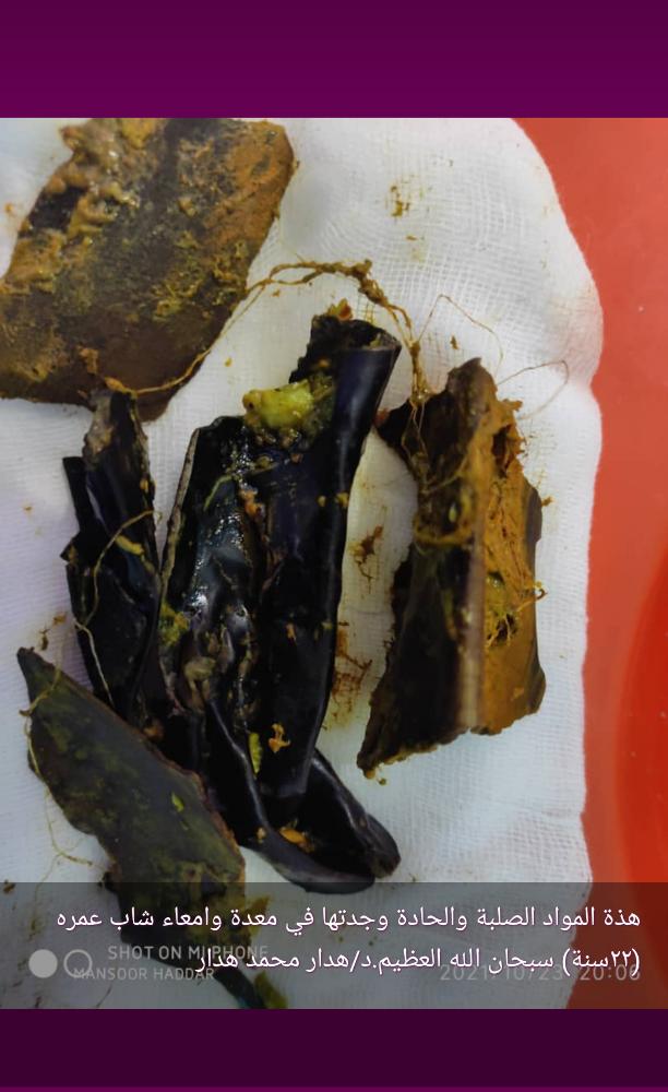 تمكن الطبيب الجراح د.هدار محمد هدار من إجراء عملية حساسة في المشفى التخصصي ،وهو أكبر مشافي البيضاء مساء يوم أمس لشاب يعاني من حالة نفسية ويأكل المواد الصلبة ؛ وقد أُسعف يوم أمس كحالة طارئة إثر معاناته من ألم حاد في بطنه ، وعُرض على د.هدار ، وبعد تأكيد الأشعة بأن هناك تمزقاً في أمعائه، ووحود أجسام غريبة في بطنه..أُدخل فوراً غرفة العمليات كون حياته خطرة، وعند فتح البطن وُجد بلاستيك في معدته، وأجسام غريبة في أمعائه،والولد حالياً يتماثل للشفاء ،واسمه ( م.ع.أ) ،ويبلغ من العمر 22 سنة من منطقة رداع -المصلى ،وهذه من الحالات الغريبة التي صادفت طاقم الجراحة في المشفى التخصصي، و الدكتور هدار محمد من بين أكفأ أطباء الجراحة في أبين ،وكان مديراً سابقا لهيئة تطوير مشفى الرازي في م/أبين لفترتين كانتا الأفضل في حياة هذا المنجز الطبي الكبير في أبين.مرفق بالمادة فيديو وصور للعملية الجراحية.