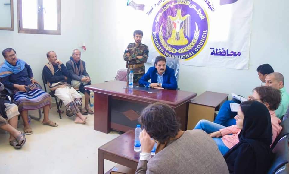التقى رئيس الهيئة التنفيذية للقيادة المحلية في المجلس الإنتقالي الجنوبي بمحافظة شبوة العميد علي أحمد الجبواني بمكتبه صباح اليوم مدير وأعضاء مركز الحوار الإنساني الذي مقره في جنيف بسويسرا