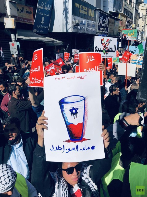 شهدت العاصمة الأردنية، اليوم الجمعة، احتجاجات ضمت آلاف المواطنيين الرافضين للاتفاقية الموقعة مؤخرا بين الأردن وإسرائيل والإمارات بشأن المياه مقابل الطاقة.