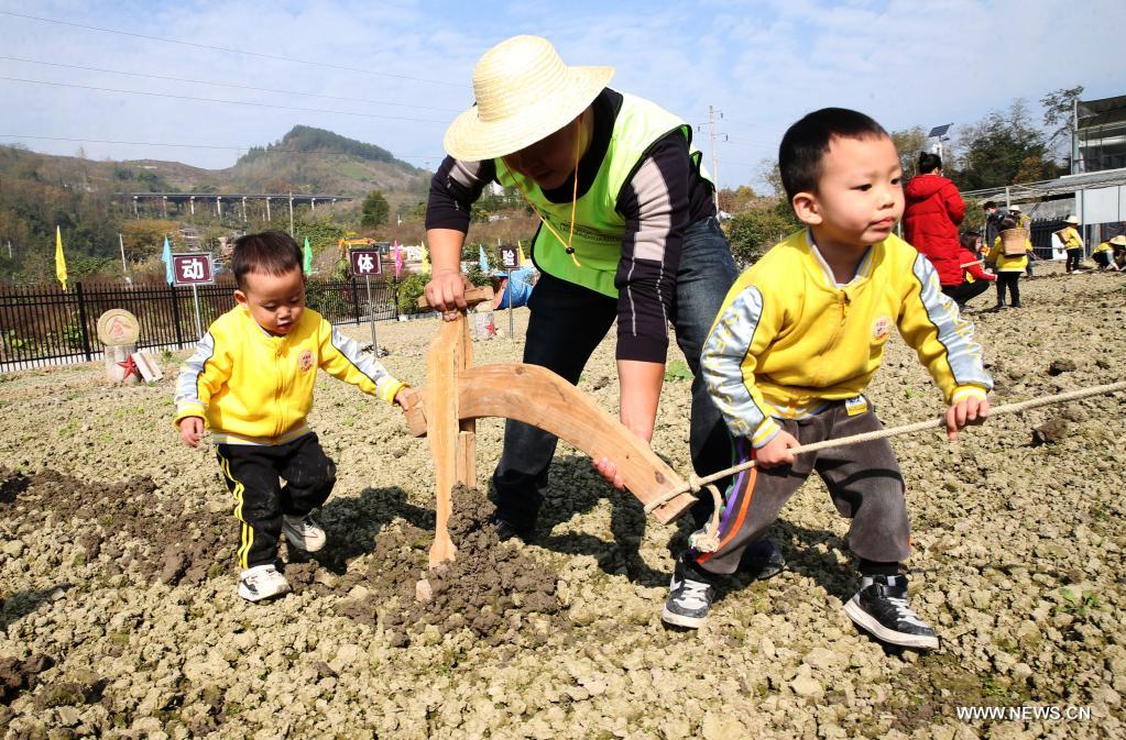 في الصورة الملتقطة يوم 27 نوفمبر 2021، فتاة تقوم بتجربة زراعة الخضروات مع أمها في قاعدة لتجربة الثقافة الزراعية في مدينة تشونغتشينغ بجنوب غربي الصين، حيث أطلقت هذه القاعدة فعاليات متنوعة خاصة للأطفال، للتمتع بالثقافة الزراعية والتعرف على طرق زراعة المحاصيل.