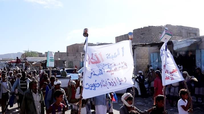 ودعا المتظاهرون في بيانهم الختامي تجّار المديرية إلى ضرورة تخفيض الأسعار وإستشعارهم بالمسؤولية الوطنية والدينية والإنسانية بما يتناسب مع المتغيرات السعرية الجديدة بعد تعافي العملة المحلية امام العملات الأجنبية،مطالبين بتخفيض أسعار السلع الغذائية والاستهلاكية،وأجرة المواصلات أسوةً بمديريات ومحافظات الجنوب