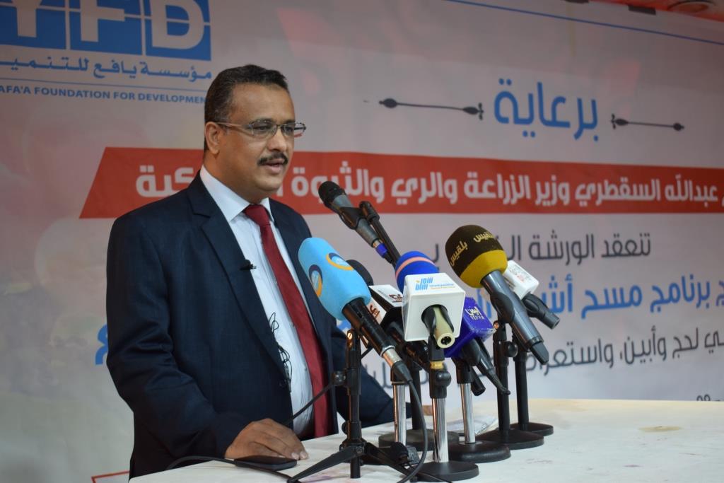 برعاية اللواء / سالم عبدالله السقطري وزير الزراعة والري والثروة السمكية انعقدت صباح اليوم بالعاصمة عدن فعاليات الورشة الخاصة بإعلان نتائج برنامج مسح أشجار البن في مديريات يافع ،بمحافظتي لحج وأبين واستعراض أهم متطلبات تطوير زراعته والتي نظمتها مؤسسة يافع للتنمية ومجموعة الزراعيين بيافع .