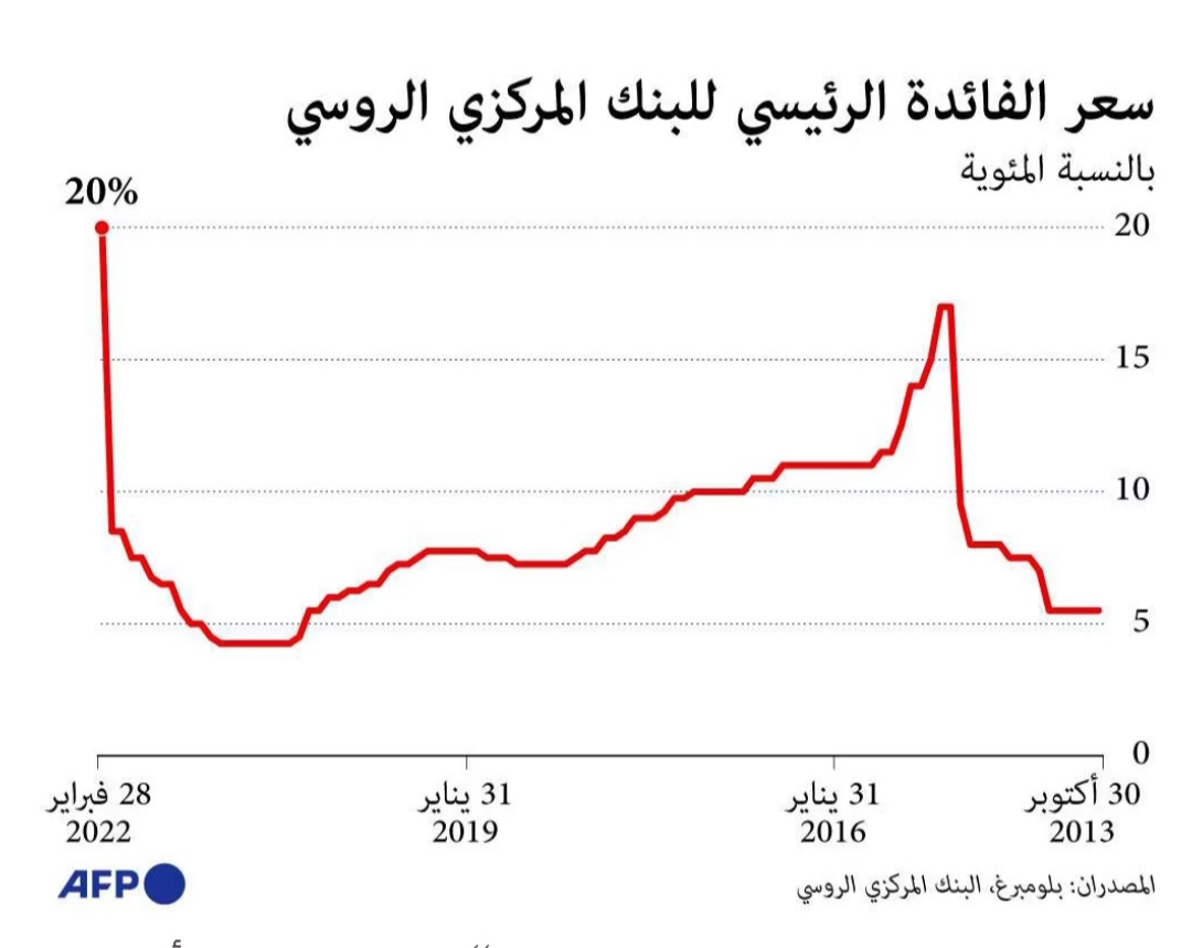وبشكل يدل على مدى المخاوف التي قد تصيب مفاصل الاقتصاد الروسي بالشلل، صعد المركزي بسعر الفائدة من 9.5 في المئة إلى 20 في المئة، كما أمر الشركات ببيع 80 في المئة من عائداتها من العملات الأجنبية.