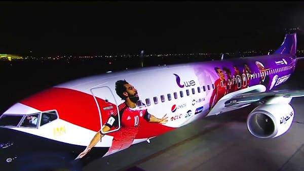 وكانت الطائرة تحتوي على شعار إحدى شركات الاتصالات المتعاقدة مع اتحاد الكرة فيما يملك صلاح عقدًا مع شركة منافسة.