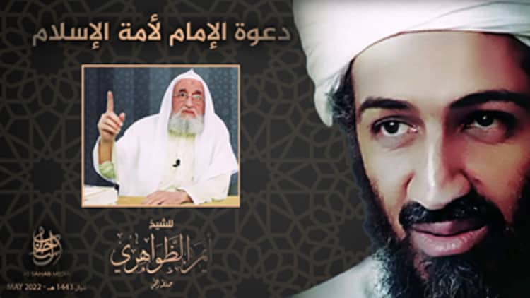 وشدد الظواهري في الفيديو على هدف بن لادن للمسلمين أنّ يصبحوا “أمّة واحدة”، نقلاً عن تصريحه الشهير: “نحن نعيد رسم خريطة العالم الإسلامي، لتكون دولة واحدة تحت مظلة الخلافة، إن شاء الله”.