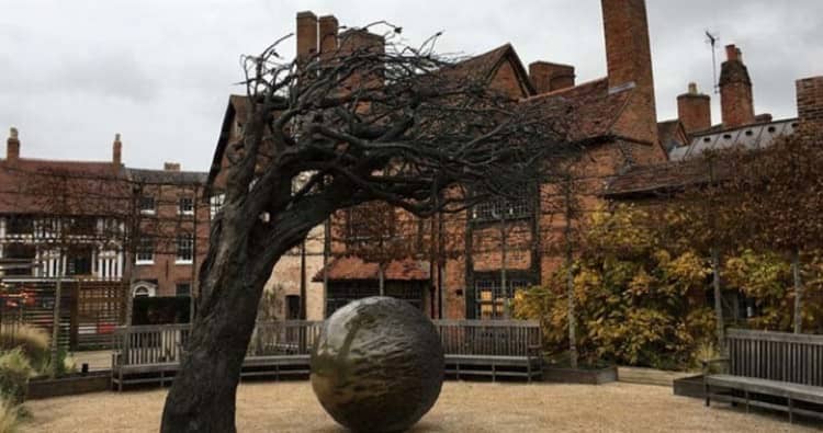 في البداية، قطع (غاستريل) شجرة توت في حديقة المنزل، زرعها شيكسبير بنفسه سابقاً، ما أثار غضب وحنق سكان البلدة. بعدها، قام بهدم منزل أحد أشهر الشعراء في التاريخ، وأحد رموز انجلترا.