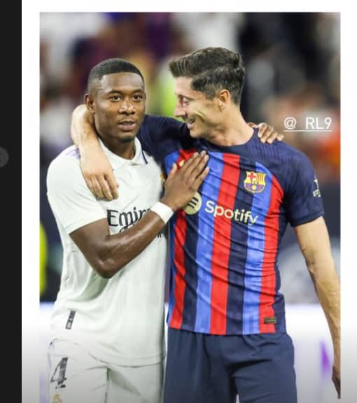 نشر ألابا على حسابه في موقع “إنستغرام” صورة من المباراة تجمعه بليفاندوفسكي، الذي قضى معه سنوات عديدة في صفوف نادي بايرن ميونيخ، وكتب عليها: “لا تعتد على هذه النتيجة يا ليفاندوفسكي. تسرني رؤيتك!”.