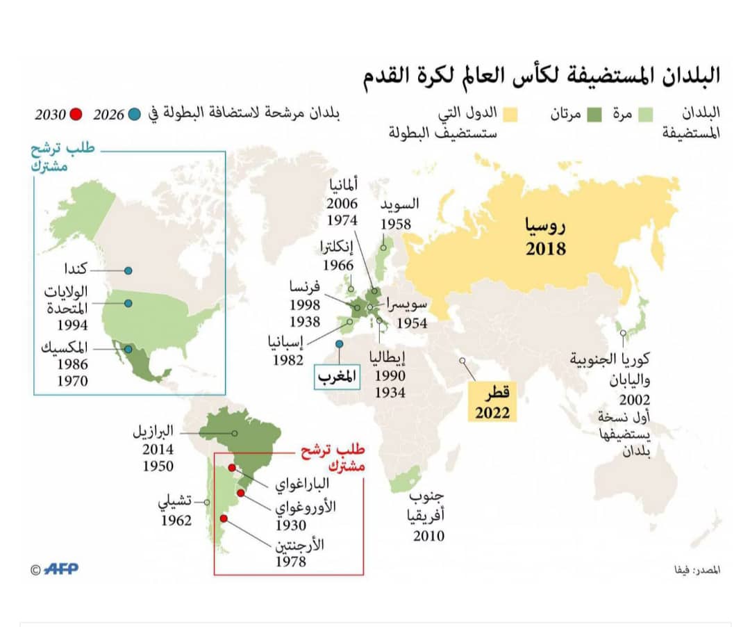 وهي المرة الأولى التي يصل فيها عدد الدول المرشحة للاستضافة إلى أربع، علما أن نسخة 2026 ستقام في ثلاث دول هي الولايات المتحدة والمكسيك وكندا.