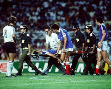 شهد نصف نهائي مونديال 1982 اصطدام الألماني الغربي هارالد (توني) شوماخر بالفرنسي باتريك باتيستون الذي كان شبه منفرد ويحاول تسجيل هدف في مرمى الحارس المتقدم. نتيجة الاصطدام؟ أسنان للمدافع الفرنسي على أرض الملعب وضرر في فقرات العنق. نتيجة المباراة؟ فوز ألمانيا الغربية 5-4 بركلات الترجيح بعد التعادل 3-3، علما ان كرة باتيستون لم تنجح في دخول الشباك ولم يُطرد شوماخر الذي تابع اللعب بشكل اعتيادي.