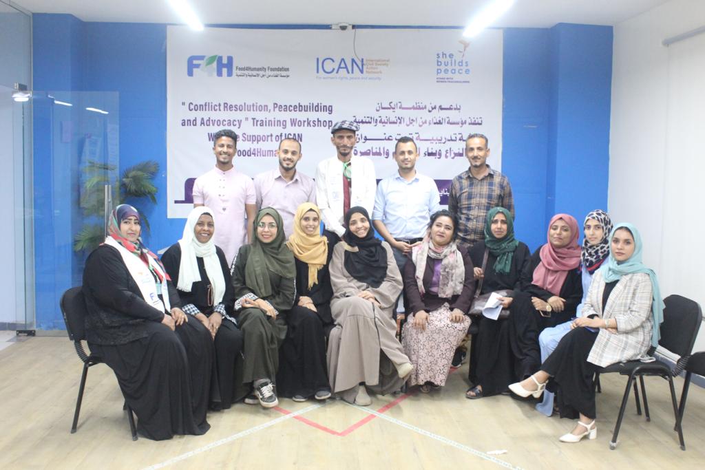 اختتمت مؤسسة الغذاء من اجل الانسانية والتنمية (Food4Humanity) وبدعم من منظمة “ايكان” الدورة التدريبية تحت عنوان “حل النزاع وبناء السلام ” خلال الفترة 28-30 يناير 2023م بمشاركة عدد من ممثلي منظمات المجتمع المدني من محافظات عدن وأبين وتعز.