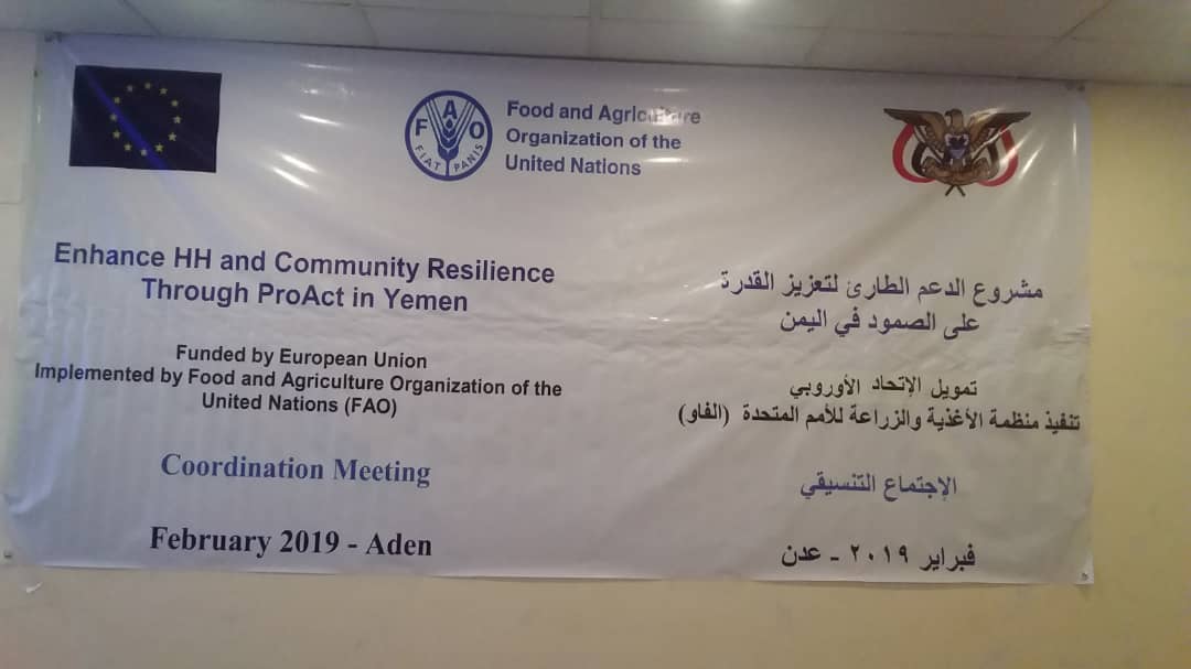 عقدت منظمة الأغذية والزراعة للأمم المتحدة “فاو” FAO، صباح اليوم، اجتماع تنسيقي مع ممثليّ السلطة المحلية في مديرية حجر في محافظة حضرموت، ضمن مشروع “الدعم الطارئ لتعزيز القدرة على الصمود في اليمن على المستوى الاسري والمجتمعي”، الممول من الاتحاد الأوروبي.