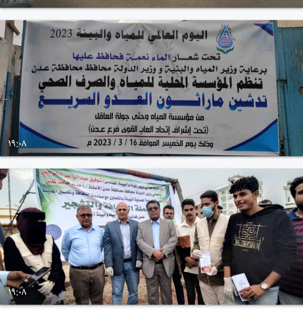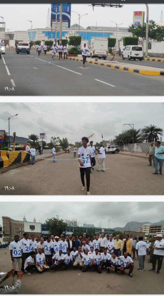 كرم وزير المياه والبيئة ومعه وكيل اول محافظة عدن محمد نصر الشاذلي ووكيل وزارة الشباب والرياضة خالد الخليفي وفيصل الثعلبي القائم باعمال رئيس الهيئة العامة لحماية البيئة ومدير مؤسسة المياه محمد باخبيرة ،وعوض مبجر امين محلي صيرة صباح اليوم الفائزين بسباق المارثون الرياضي الذي نظمته مؤسسة المياه والصرف الصحي بالعاصمة عدن والذي شارك فيه حوالي ” 50″ متسابقا ،انطلاقا من امام مبنى مؤسسة المياه بمديرية صيرة وحتى جولة العاقل بمديرية خور مكسر .