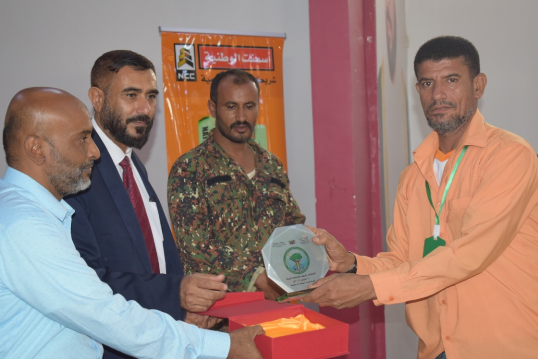 اقيم الاحتفال برعاية وزير المياة والبيئة الدكتور عزي هبة الله شريم ومحافظ محافظة لحج احمد عبدالله تركي تحت شعار (البيئة امل وحياة ) وبدعم الشركة الوطنية للاسمنت .