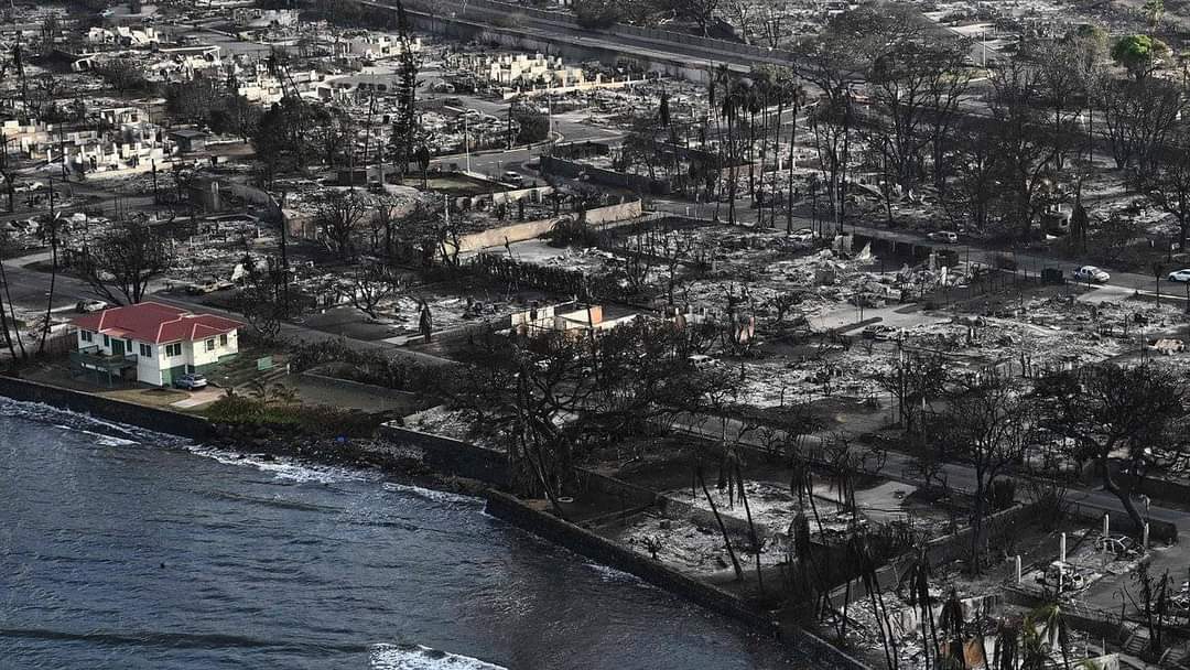 بأعجوبة نجا منزل واحد على قطعة أرض تطل على المحيط غربي جزيرة ماوي في هاواي من حرائق الغابات التي دمرت مدينة لاهاينا بالكامل. وفقًا لديلي ميل.