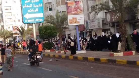 من جانب أخر خرجت مسيرة جماهيرية راجلة في مديرية المعلا بعدن اليوم العصر ، تنديدا بقتل الشاب رأفت دمبع.