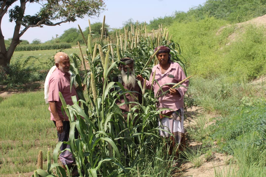 زار صالح الكور رئيس الاتحاد التعاوني الزراعي محافظة لحج بمعية ياسر مقبل معرار مدير مكتب اعلام مديرية تبن ورئيس جمعية العرائس عادل عرب صباح اليوم الاحد مزارع خلاف بالوادي الأعظم التابع لجمعية العرائس بمديرية تبن بمحافظة لحج.
