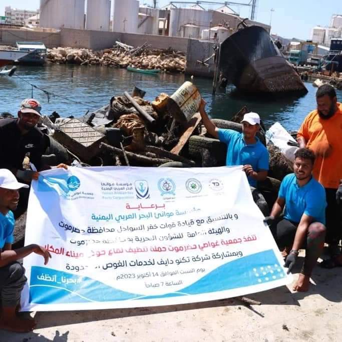 نفذت جمعية غواصي حضرموت حملة تطوعية واسعة لتنظيف قاع حوض ميناء المكلا من المخلفات المختلفة ، بمشاركة ثلاثين غواص من منتسبي الجمعية ، وانطلقت الحملة صباح اليوم السبت الموافق 14 اكتوبر 2023م من المشروع الرابع وحتى منتصف الحوض الميناء واستمرت لقرابة ثلاث ساعات متواصلة ، والحملة برعاية مؤسسة موانئ البحر العربي اليمنية وبالتنسيق والتعاون مع قوات خفر السواحل بمحافظة حضرموت والهيئة العامة للشؤون البحرية بالمحافظة وبمشاركة شركة تكنودايف لخدمات الغوص المحدودة .