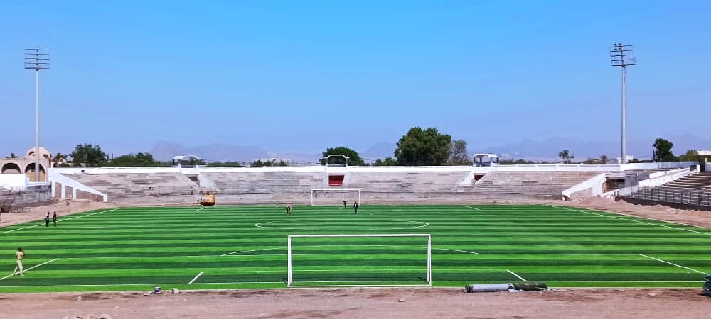 وأشار، إلى إن نسبة الإنجاز في الملعب وصلت إلى 95 في المائة، وبات جاهزًا لافتتاحه خلال شهر (يناير) القادم، ضمن عدد من المشاريع الأخرى كـ (ملعب معاوية بلحج، وملعب الشهداء بتعز، وملعب الصمود بالضالع).