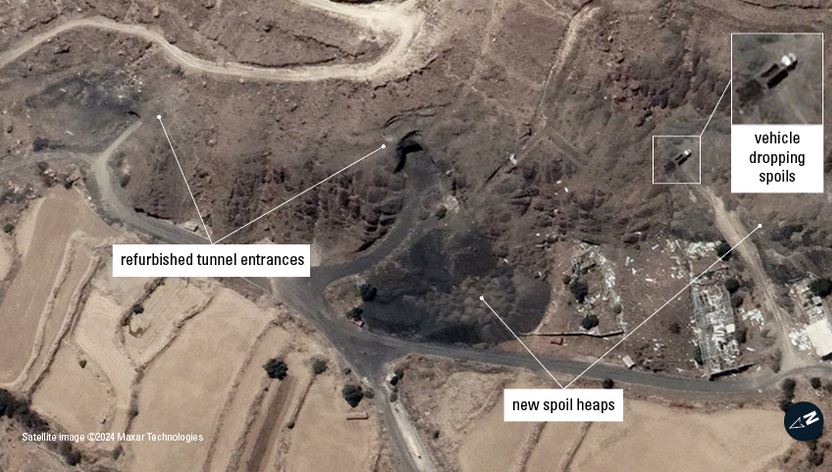 ويثير حجم المداخل، الكبيرة بما يكفي لاستيعاب المركبات الثقيلة، تساؤلات حول ما إذا كان يمكن استخدام هذه المرافق تحت الأرض، التي جرى تجديدها وتشييدها مؤخرا، في نهاية المطاف لإخفاء أجزاء من ترسانة الحوثيين الاستراتيجية من الصواريخ والطائرات المسيّرة.